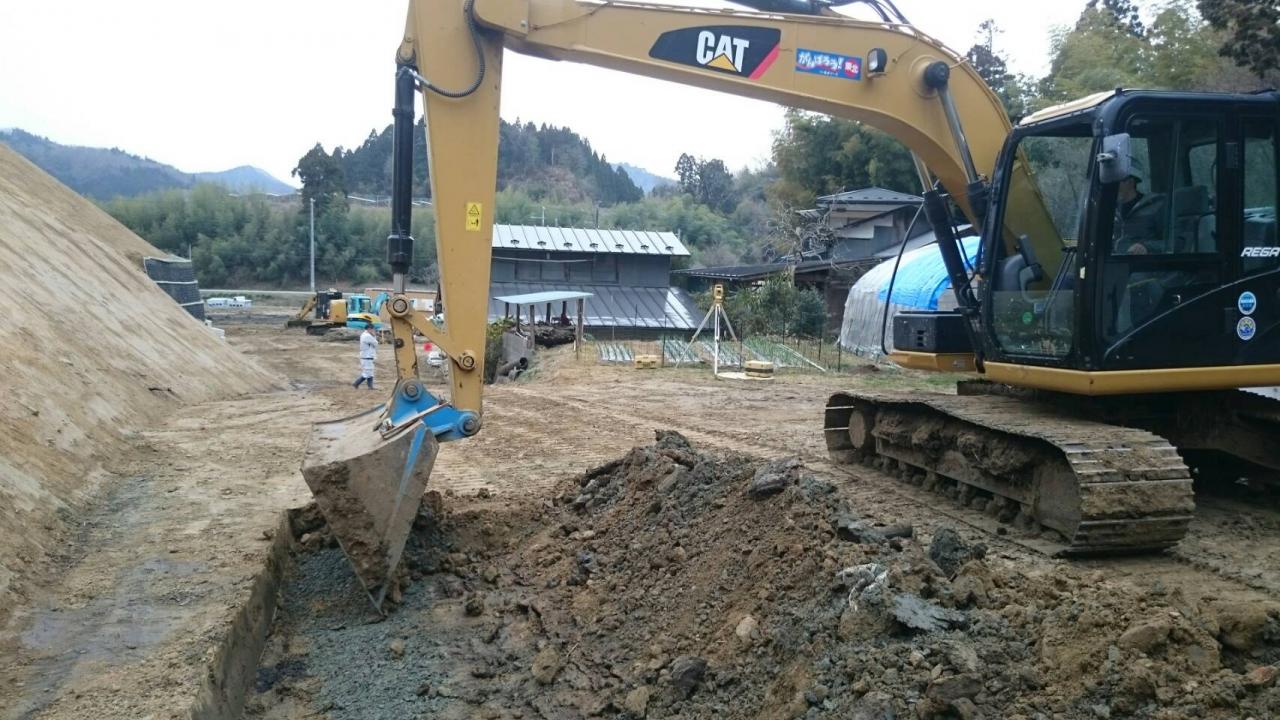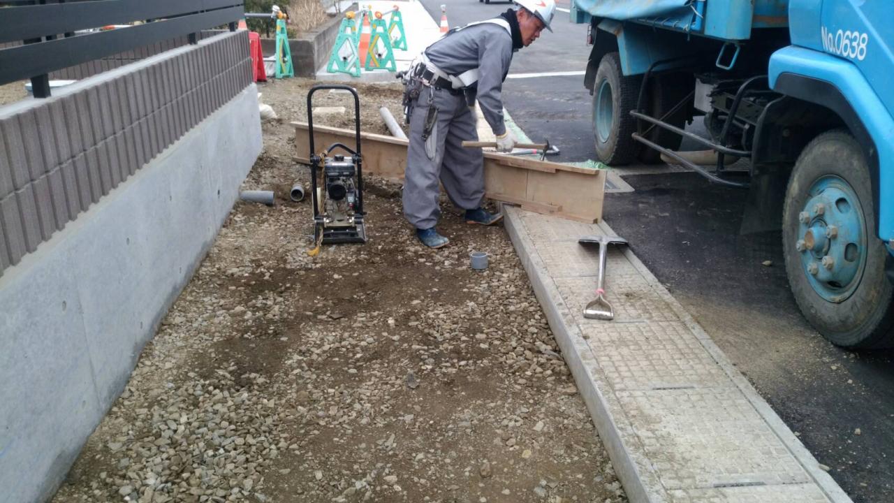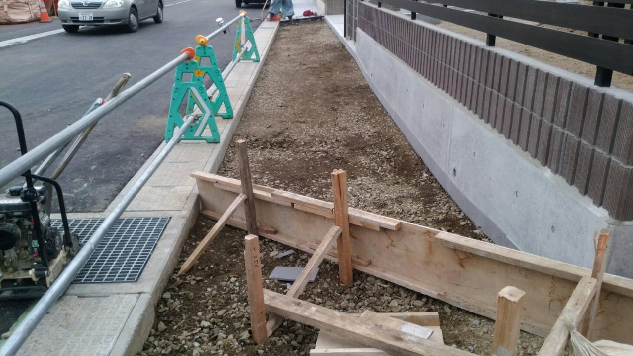 掘削、砕石し転圧、型枠組立