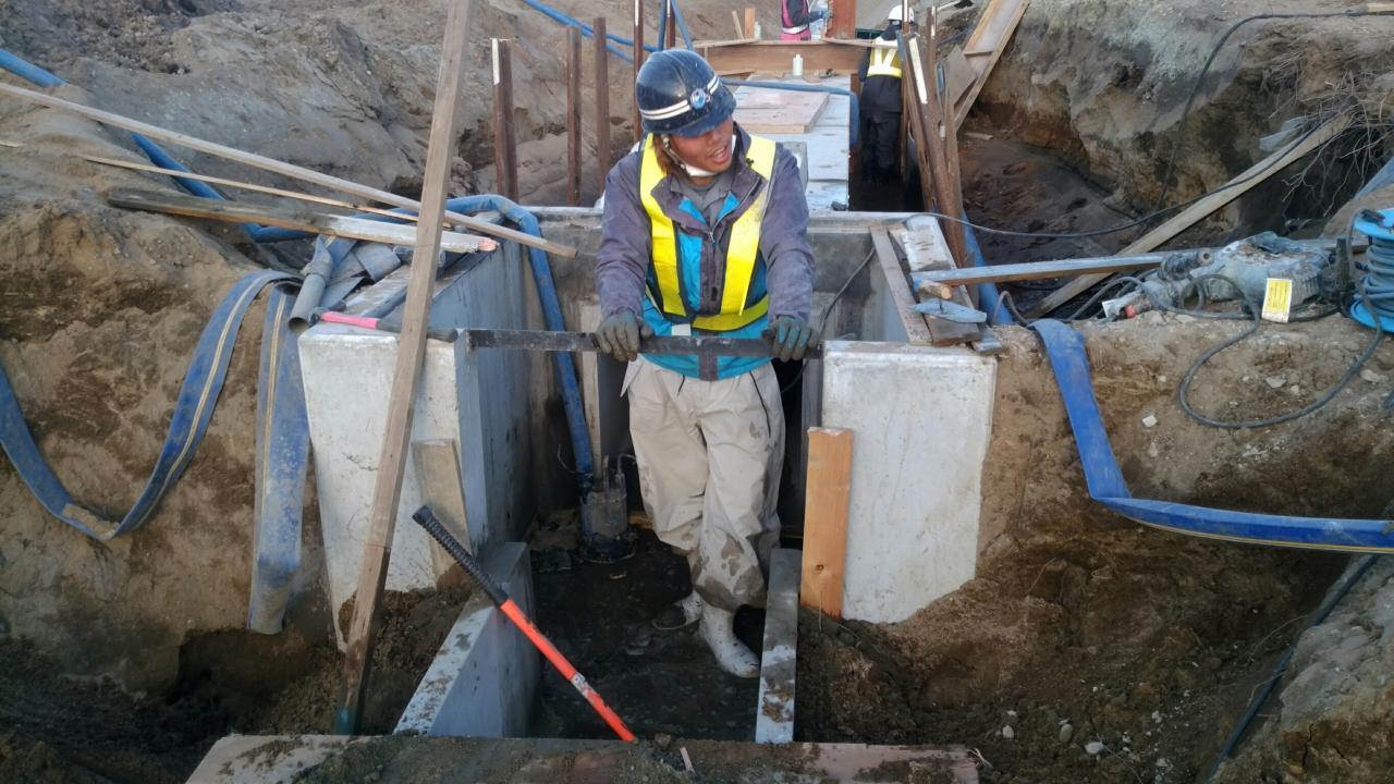 水替、床付、据付、埋戻し