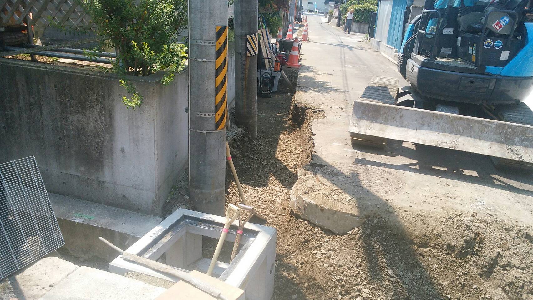 ・掘削、砕石、ベースコン打設、据付、埋戻し