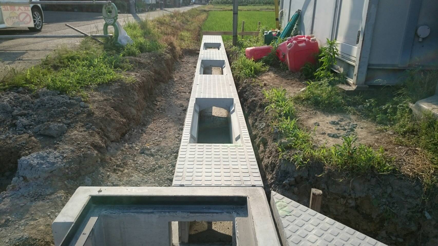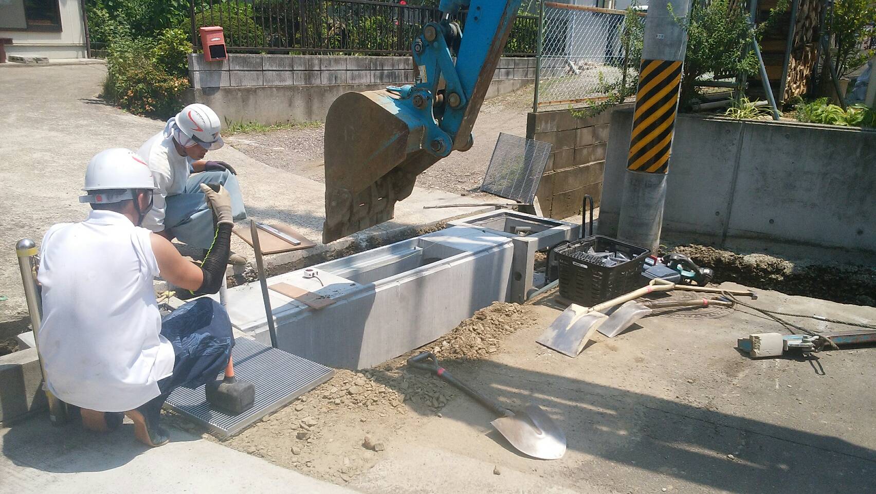 ・掘削、基礎砕石敷均転圧、据付、埋戻し、蓋掛け
