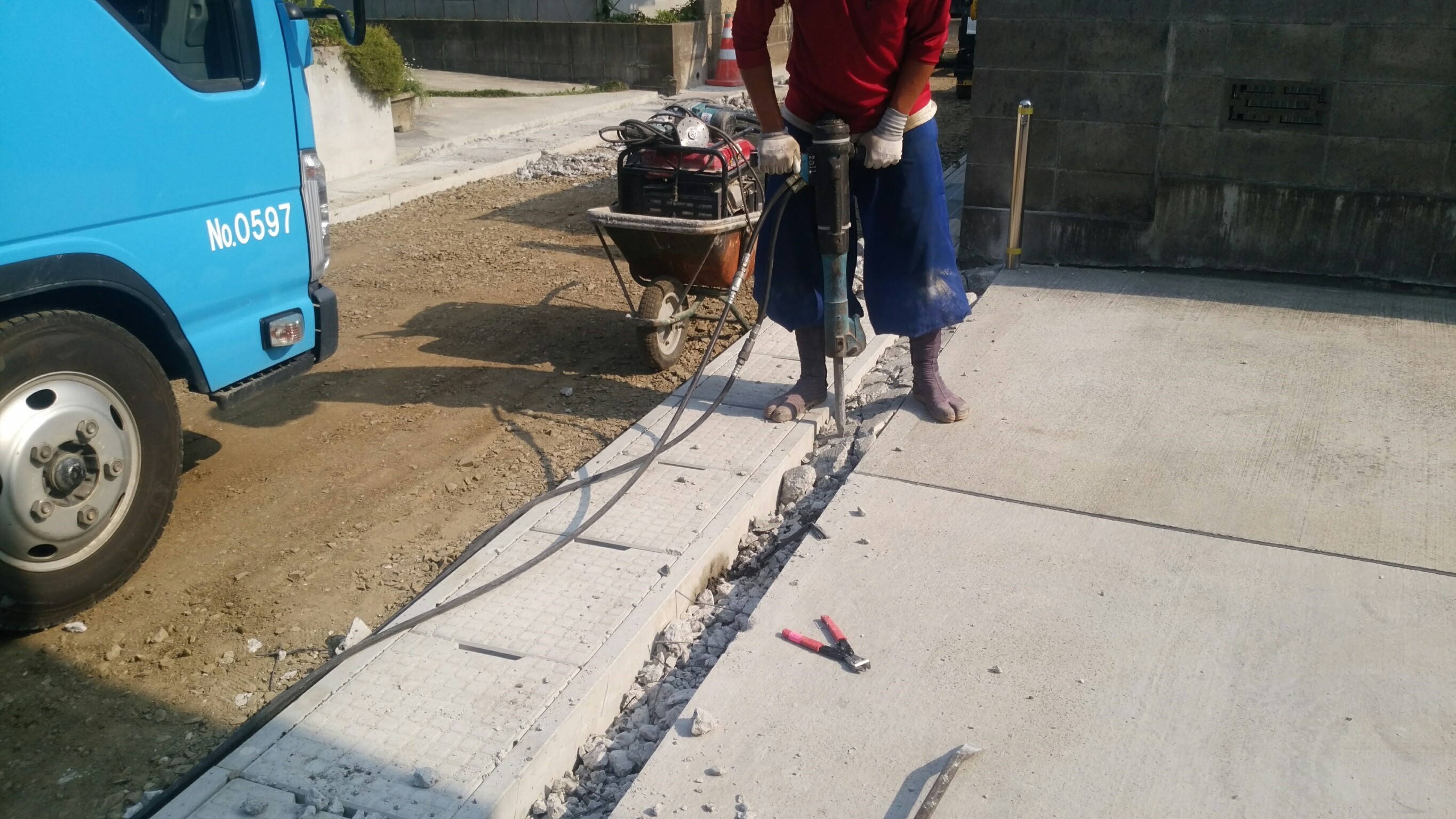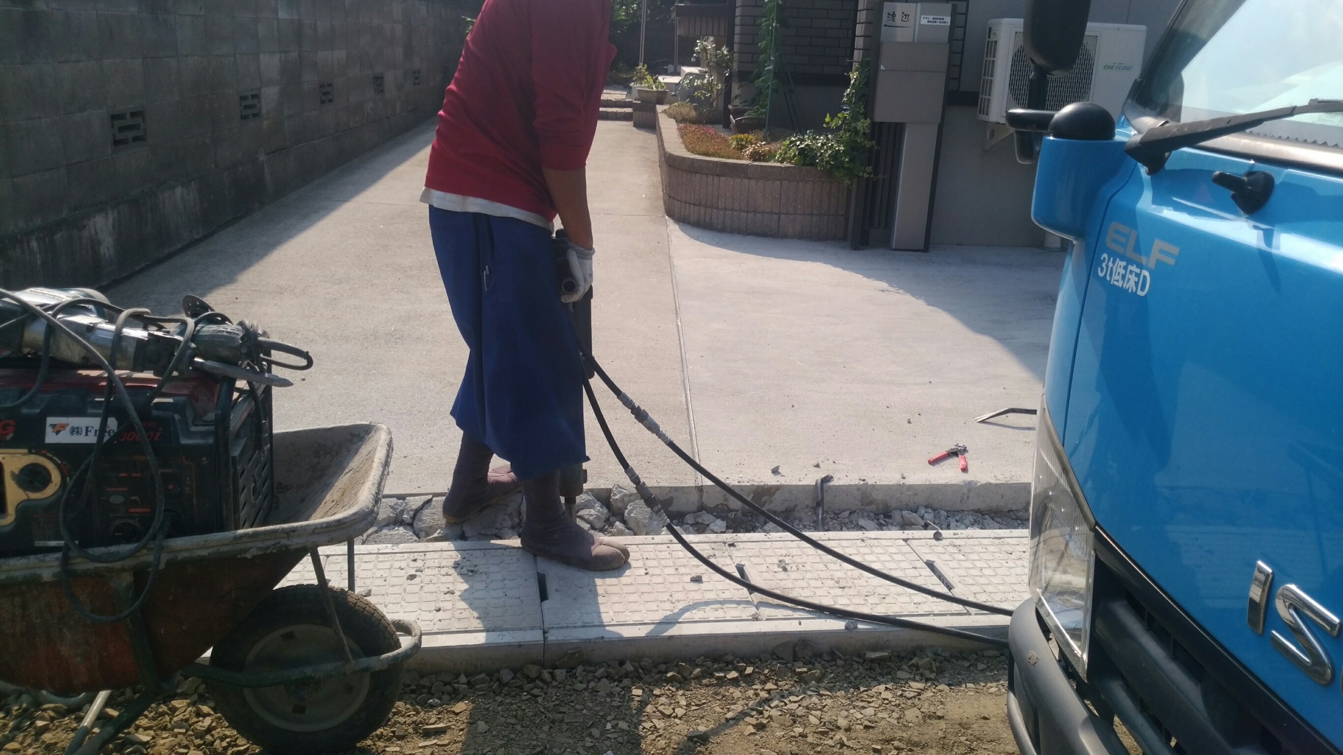 土間コンクリート斫り、撤去