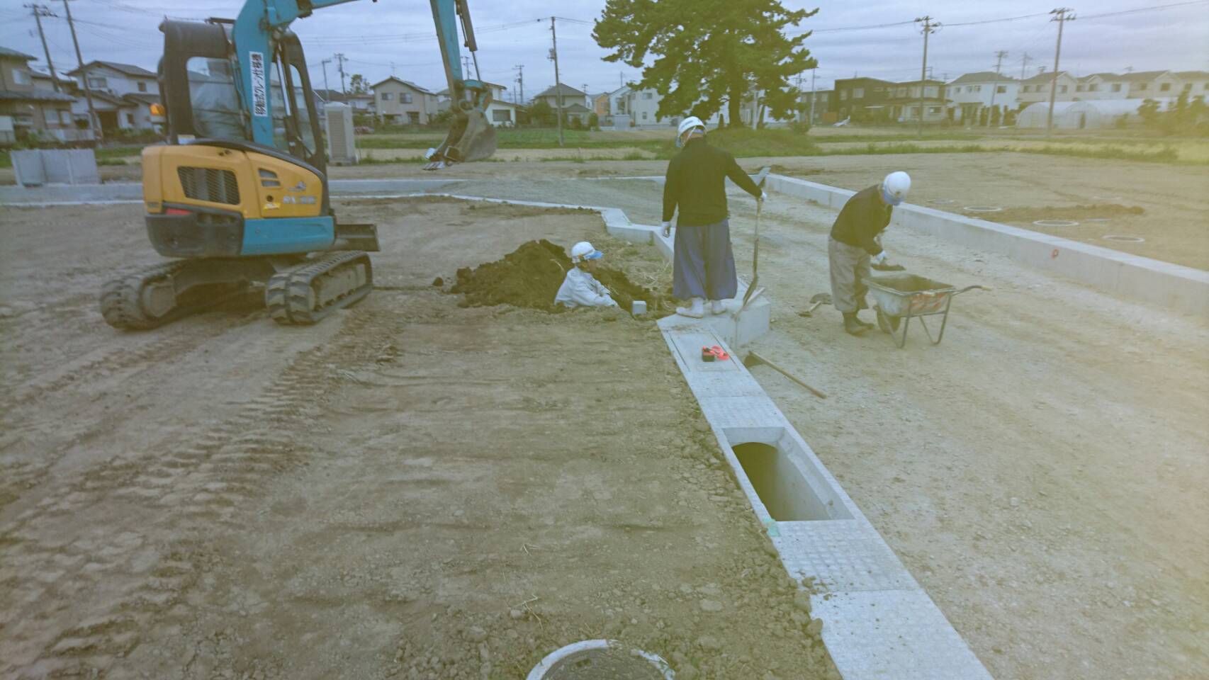 床掘、基礎砕石、据付、埋戻し