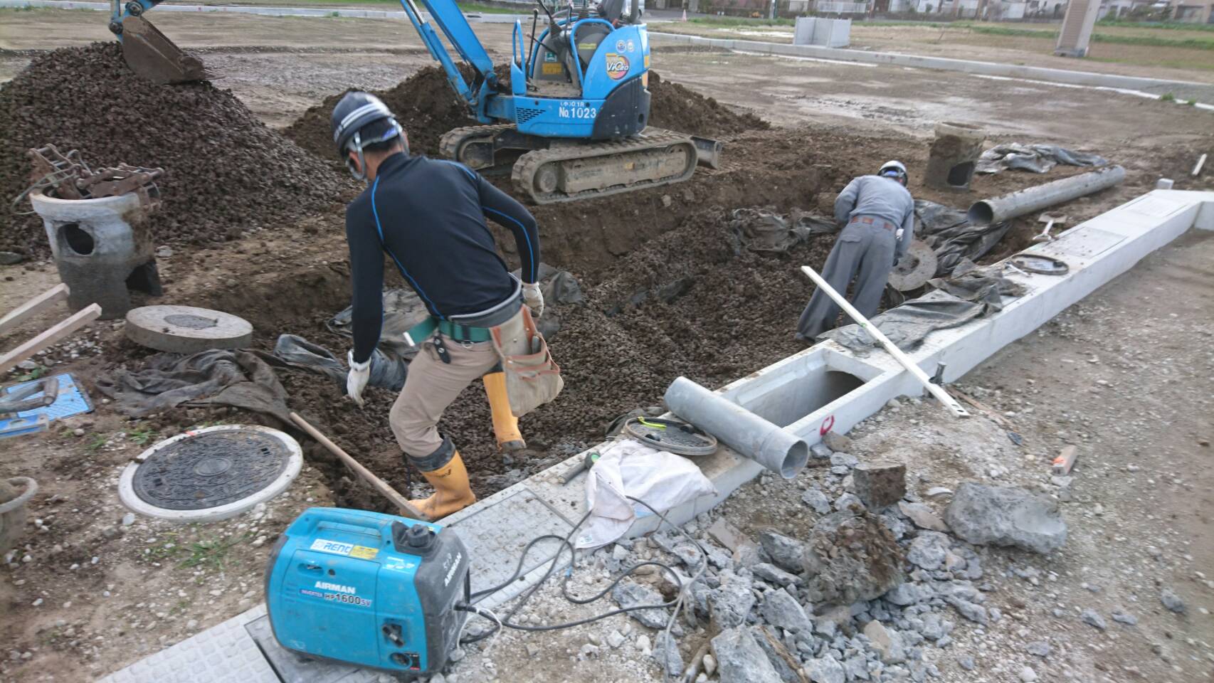 雨水桝設置、埋戻し