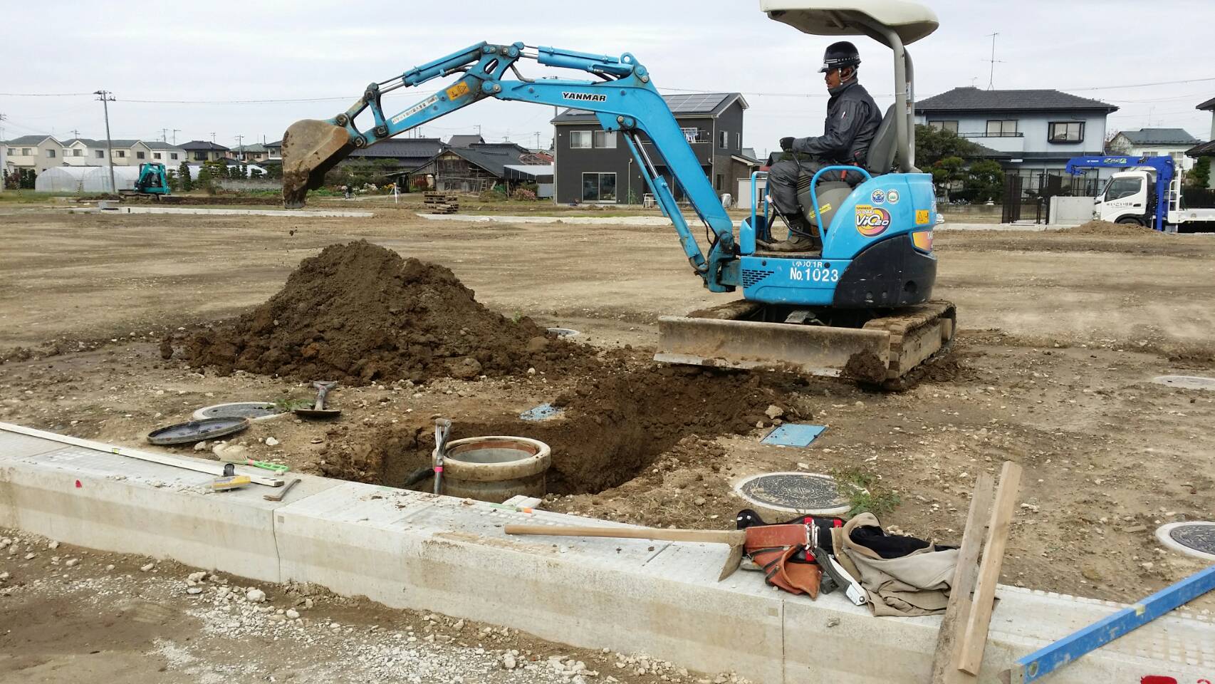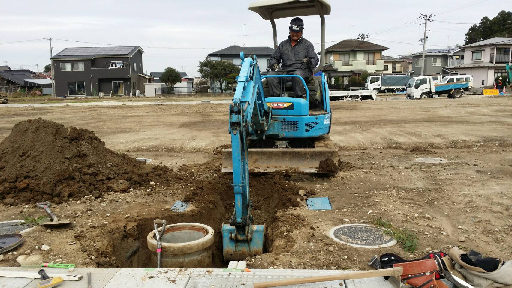 宅内汚水桝設置、埋戻し