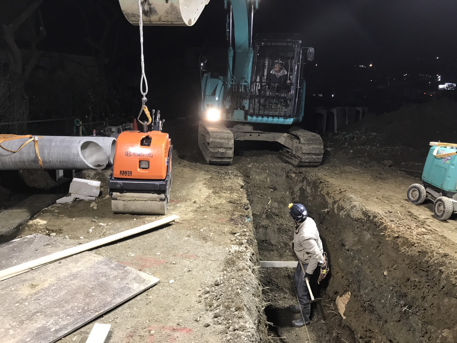 ・掘削、基礎砕石、丁張掛け